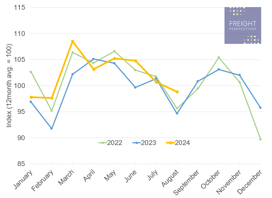 Despite the unexpected decline in July, August's data and preliminary forward-looking indicators from the Transporeon platform suggest a robust recovery in truck activity. On the other hand, although the demand figures for August indicate a slight upward trend, this is significantly below the previously expected values. This, combined with the weak July values, indicates a delayed return to growth economy and transportation demand in Europe.