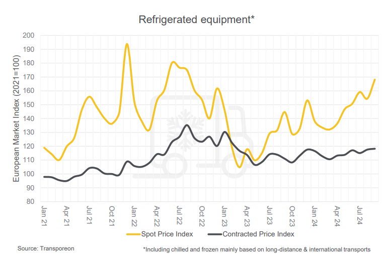 Contracted and spot market rates on European level for standard and refrigerated equipment