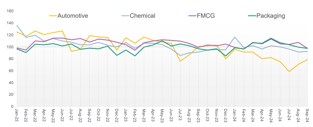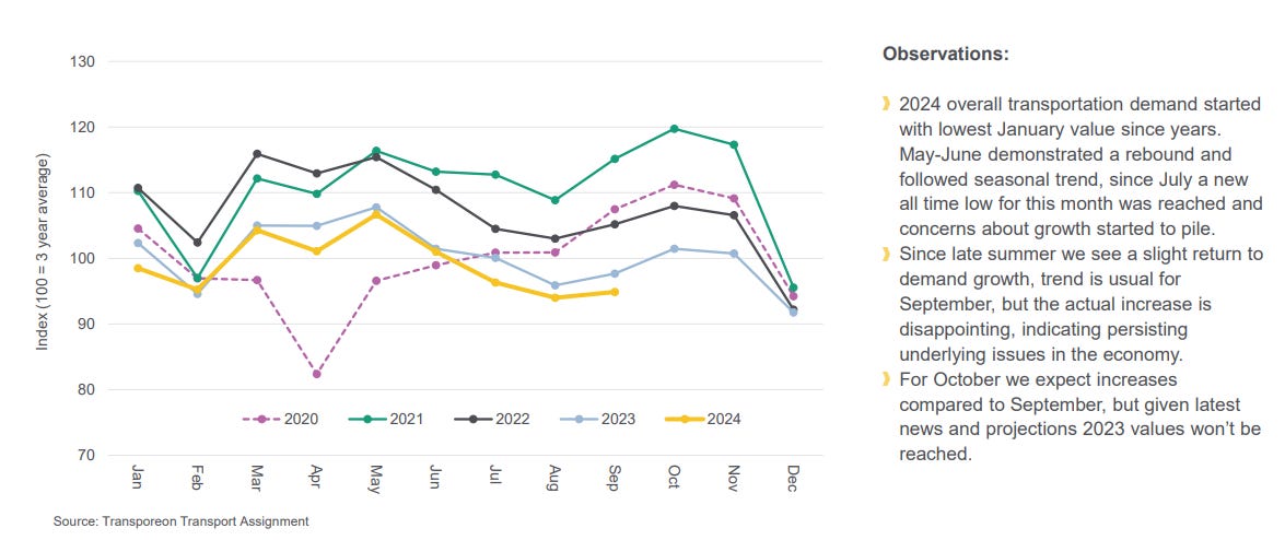 September demand showed a less pronounced seasonal increase, remaining below 2023 levels.