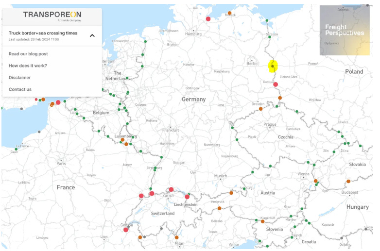 I have periodically analyzed how these measures impact the transportation industry and wider economy. Some of you may recall the real-time map of major European border crossing points that we created during the Covid period.