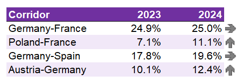 In my view, we clearly see a seasonal movement. However, the magnitude of changes in some markets is remarkable. Spot rates are already higher in 2024 compared to 2023. If we now see considerably higher percentage changes, like in Germany, Poland, and Hungary, it may indicate other influencing factors. Higher demand for transportation or a lack of available capacity are the next logical reasons.
