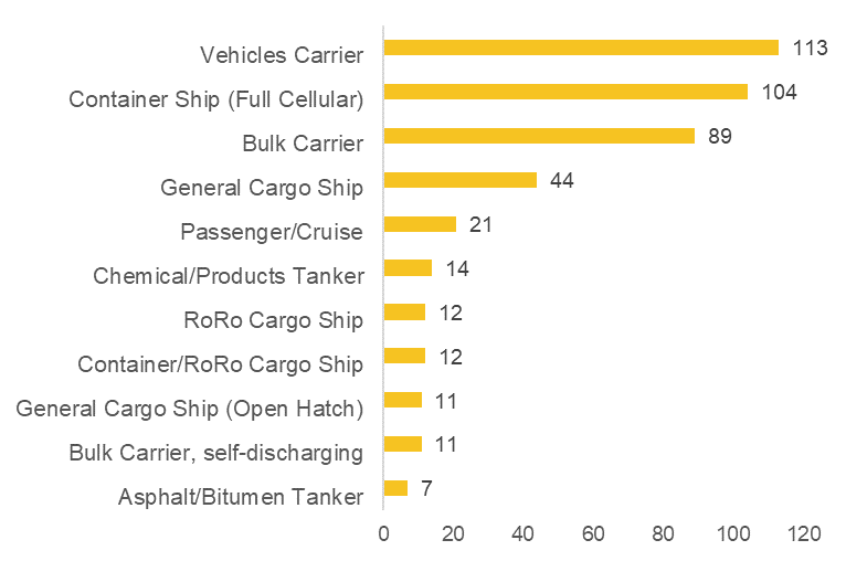 Ship count by category at Baltimore Port in 2024 (YTD)